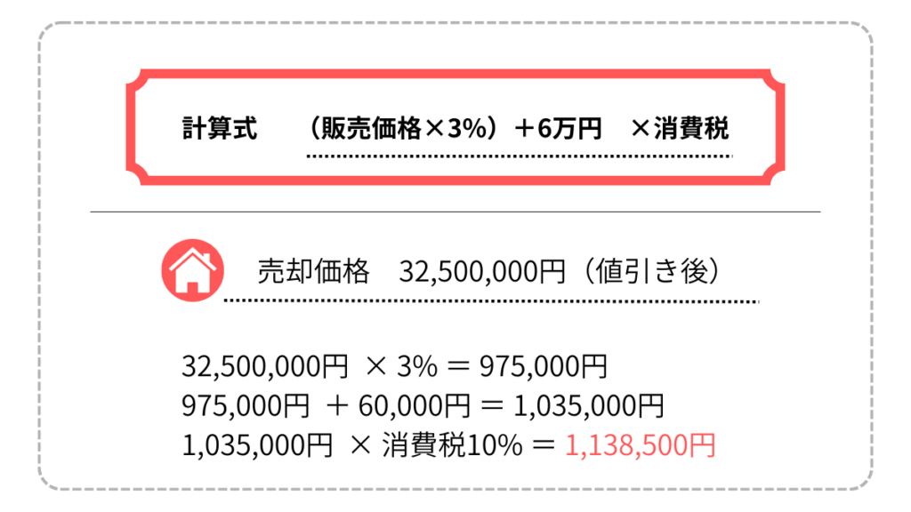 3,250万円の販売価格で、仲介手数料は113万8,500円でした。